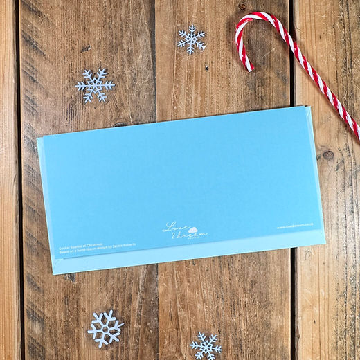Based on a hand-drawn design by Staffordshire artist, Jackie Roberts, these Christmas cards feature a cheeky Cocker Spaniel who has had a little too much fun, wrapping himself in Christmas lights (which we don't recommend) and bone wrapped in a bow.