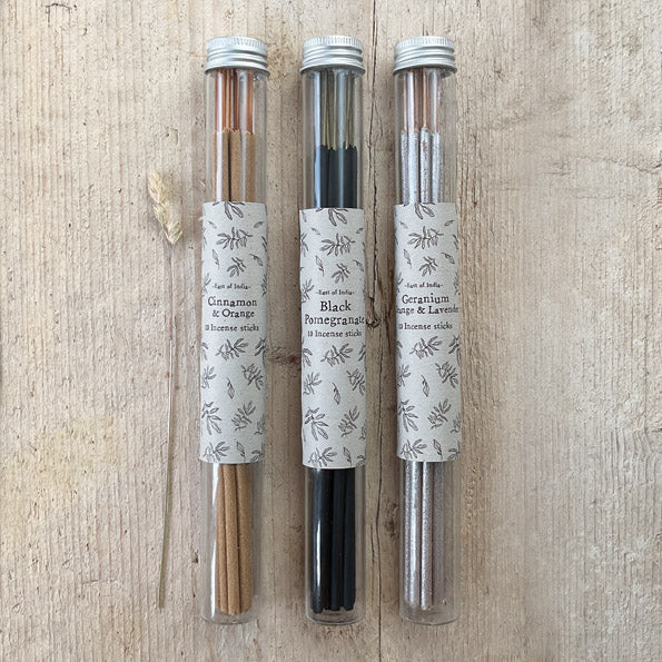 A lovely set of 10 incense sticks in a glass tube making a perfect gift for some else or yourself.